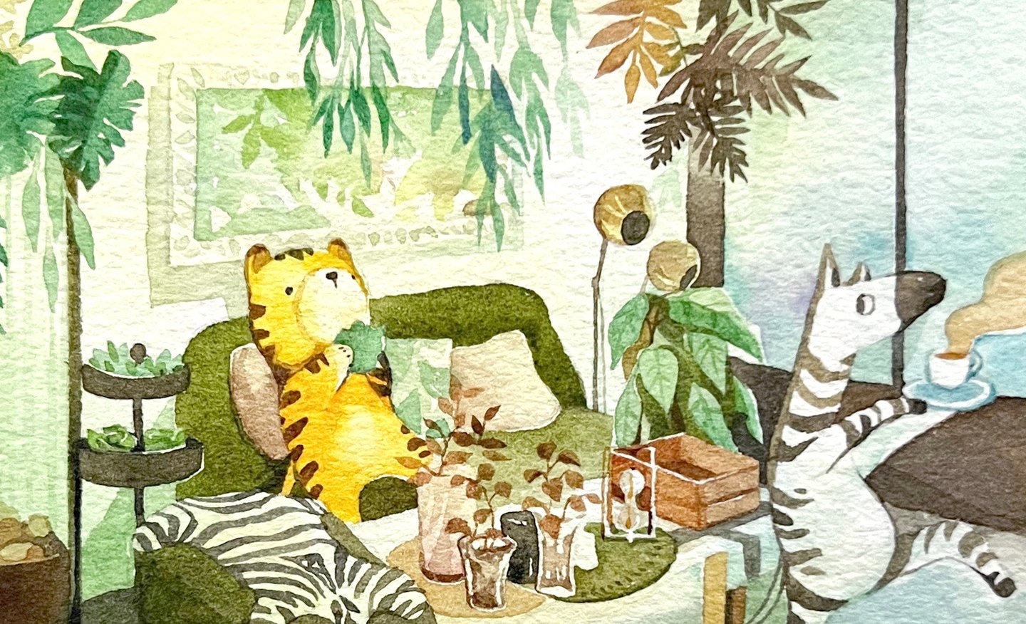 創作的當下有個有趣的想法湧上心頭,一隻斑馬服務員在端上餐點逃跑,